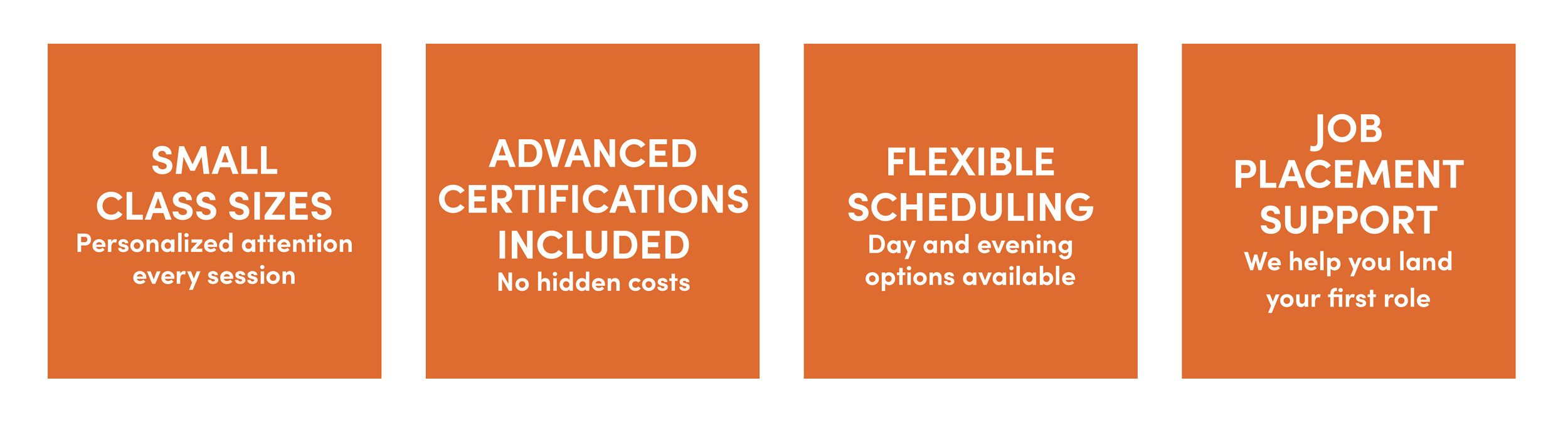 We believe in personal attention. Our intimate classroom setting means you're never just a number. You'll build real relationships with instructors who are invested in your success — and graduate with the confidence to show for it.